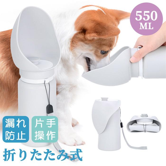 ペットボトル型給水器 犬用 携帯用 水筒 550ml 折りたたみ式 軽量 散歩 お出かけ 旅行 漏れ防止 片手操作 携帯水筒 給水ボトル 給水カップ ウォーターボトル ペット用品 水飲み器 小型犬 中型犬