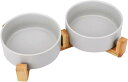 ペット用ダブルボウル セラミック素材 バンブーフレーム 安定感 滑り止め付き 分離可能 水入れ 餌入れ