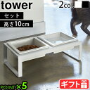 【レビュー特典】 山崎実業 【 ペットフードボウルスタンド タワー 】 tower 5814 5815高級感 ペット用 フード食器 犬 猫 キャット ドック 高さがある 餌 エサ入れ 水 給水 お皿 シンプル おしゃれ 白 黒