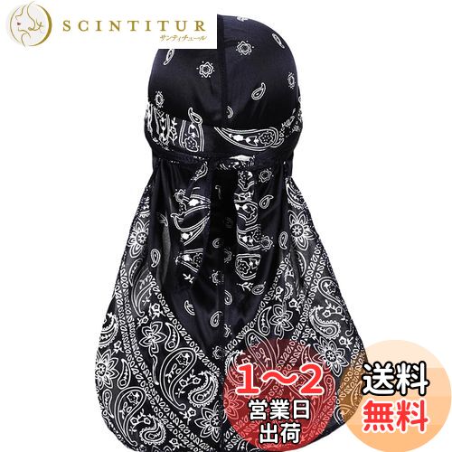 【送料無料】[Trifong] ドゥーラグ 黒 ペイズリー柄 durag 光沢の生地 du-rag 海賊 バンダナ ヒップポップ ダンス ウェーブ キャップ デューラグ hiphop衣装 ダンス衣装 ラッパー ブレイクダンス ダンサー バンダナキャップ 頭髪 頭皮 保護 通気性 ブラック