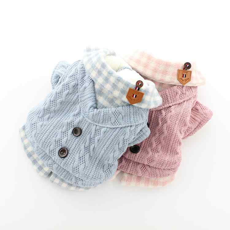 ペット服 犬 猫用 秋冬 防寒 ニット セーター 格子柄 チェック柄 アクリル あったか 暖かい 小型犬 中型犬 ピンク ブルー お散歩 部屋着
