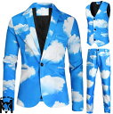 スーツ メンズ 男性用 3Dデジタルプリント シャイニー きらめく クール 派手 華やか コスプレ パーティー イベント 舞台 ステージ衣装 ナイトクラブ ライブ 演出服 ポリエステル