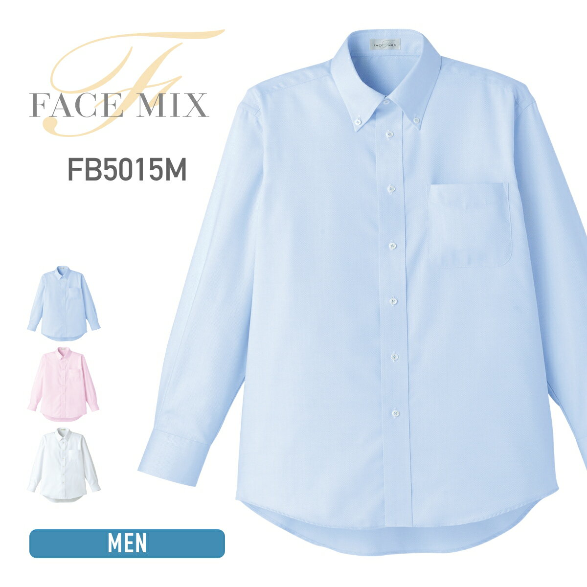 シャツ メンズ FACE MIX フェイスミックス メンズ 吸汗速乾 長袖シャツ FB5015M fb5015m 大きいサイズ 男女兼用 ユニセックス サービス業 フロント ユニフォーム 制服 業務 事務 仕事 オフィス カジュアル シンプル 吸水 速乾 ピンク ブルー ホワイト 青 白 S M L LL 3L 4L