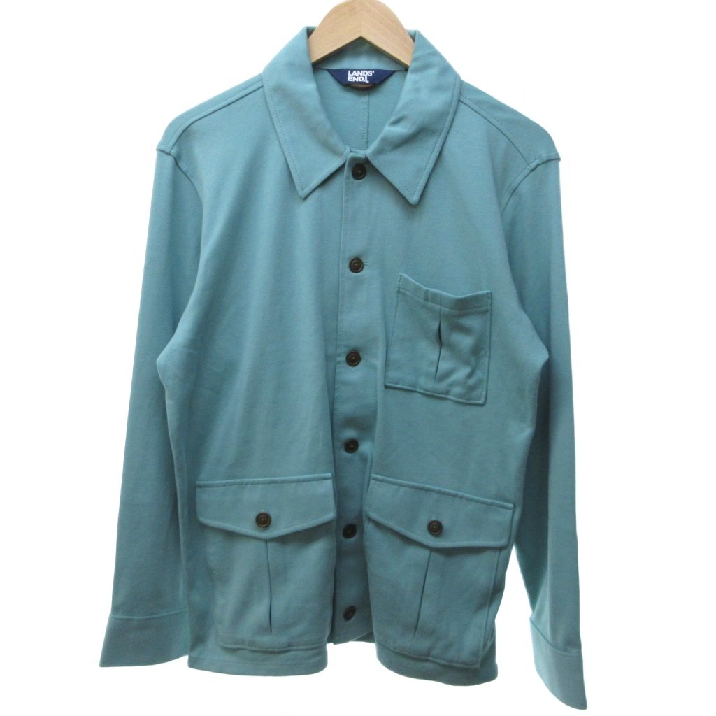 【中古】ランズエンド LANDS' END 美品 コットン シャツ ブラウス 長袖 厚手 ターコイズブルー M