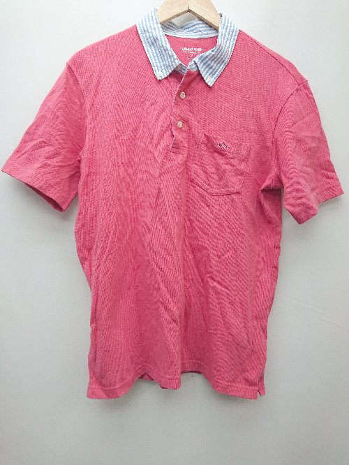 ◇ Lands' End ランズエンド シンプル 2way 半袖 ポロシャツ サイズM ピンク ブルー系 メンズ P 【中古】