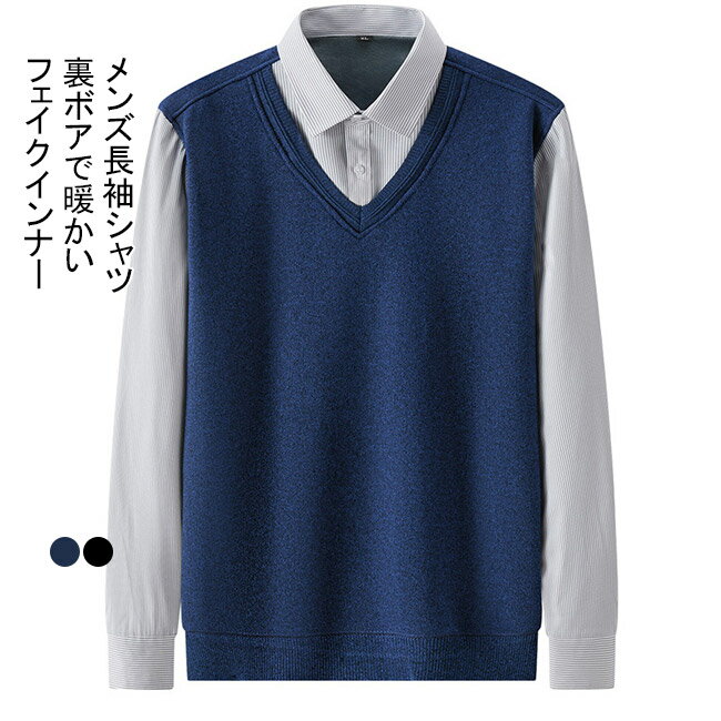 【送料無料】シャツ メンズ メンズシャツ 長袖 裏起毛 厚手 ストライプ 長袖シャツ ワイシャツ 裏起毛 裏ボア 無地 快適 防寒 保温 暖かい ビジネス フェイクインナー オフィス 通勤 通学 抗ピリング オシャレ ファッション メンズファッション プレゼント 誕生日 記念日