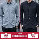 2個セットシャツ メンズ 男性用 長袖 コットン トップス スリム 薄手 無地 シンプル ビジネス オフィス カジュアル