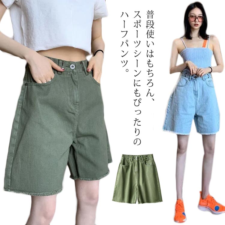 ハーフパンツ ゆったり デニムパンツ ファッション ハイウェスト 半ズボン 夏物 お洒落 カジュアル 五分丈 ボトムス ストリート系 レディース
