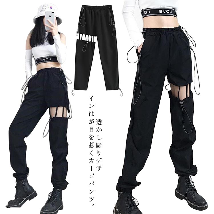 ジョガーパンツ カーゴパンツ ダンス衣装 レディース ヒップホップ 衣装 ストリート系 透かし彫り ロング丈 ダメーパンツ ダンスウェア ヒップホップ衣装 ボトムス カジュアル 長ズボン イージーパンツ ウエストゴム かっこいい