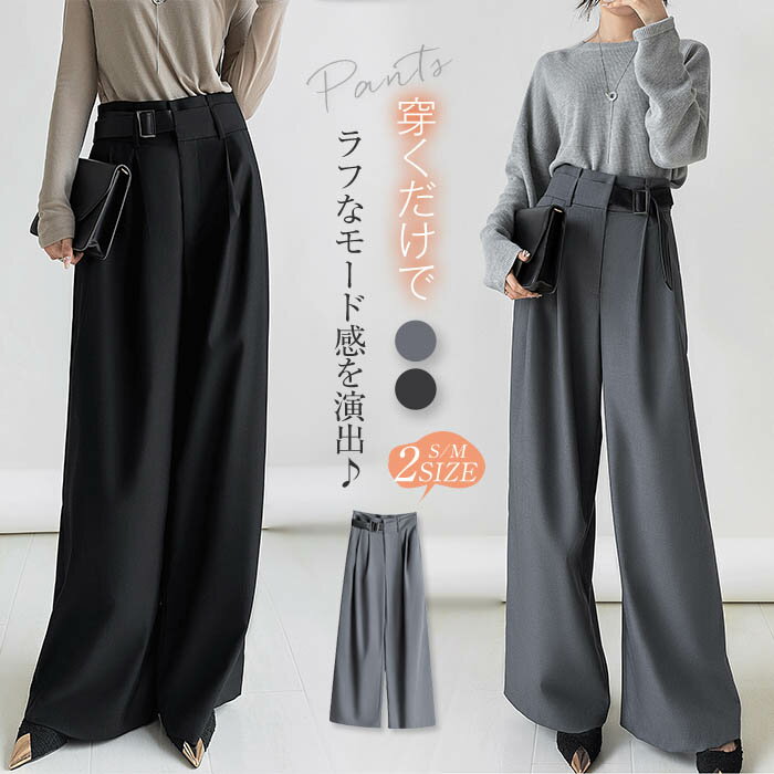 タックパンツ レディース ワイドパンツ 秋 ボトムス ワイド パンツ きれいめ カジュアル イージーパンツ ストレートパンツ ウエストゴム ロングパンツ タック スラックス バックゴム ロング スーツパンツ 美シルエット オリジナル ハイウエスト マキシ丈 通勤 オフィス