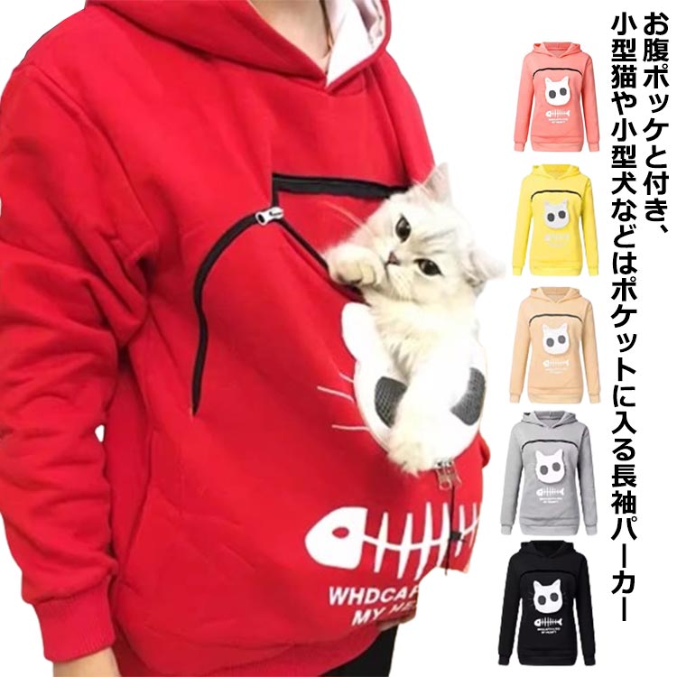 プルオーバー トレーナー 抱っこ カンガルーポケット カンガルーポケットスウェット 猫 犬 エプロン カンガルーポケット フード付き にゃんこ ポケット 裏起毛 トップス カンガルーポケット パーカー 猫 レディース スリング 長袖 抱っこキャリア カンガルーポケット