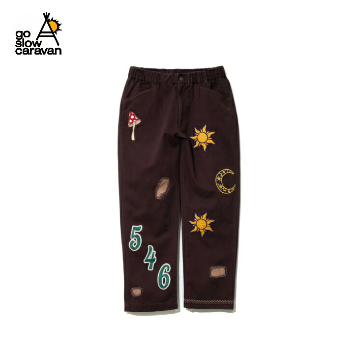 【go slow caravan ゴースローキャラバン】ツイルピーチ起毛ワッペン刺繍ワークパンツ (MENS/WOMENS) ブラウン Sサイズ パンツ テーパードパンツ コーデュロイ タウンユース キャンプ アウトドア 702391001037