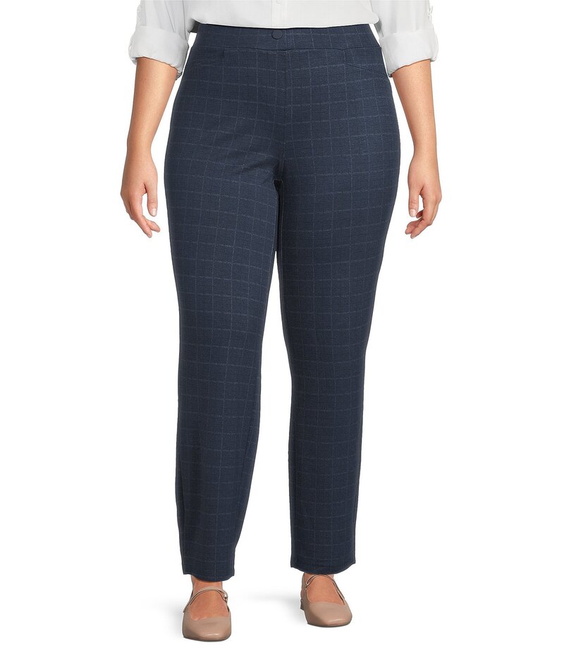 イントロ レディース ボトムス カジュアルパンツ ストレート プラスサイズ パンツ ニット Intro Plus Size Bella Double Knit Blue Mens Wear Plaid Straight Leg Pull-On Pants Blue Mens Wear Plaid ブルー