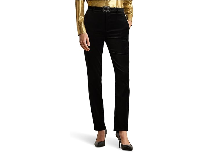 (取寄) ローレン ラルフローレン レディース ストレッチ ベルネット クロップド パンツ Lauren Ralph Lauren women Stretch Velvet Cropped Pants Black Velvet