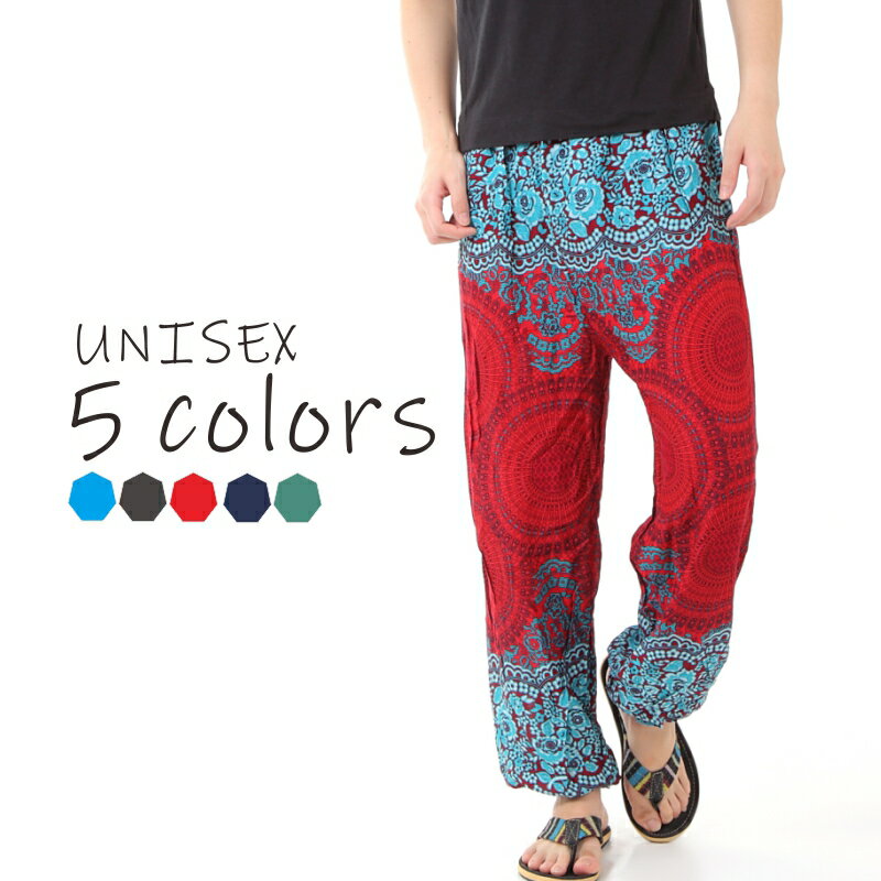 【ポイント10倍】アジアンパンツ サルエルパンツ アラジンパンツ エスニック メンズ レディース フローラル柄 タイパンツ ユニセックス M