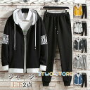 ジャージ メンズ 上下2点 セットアップ 長袖 パーカー フード付き カジュアル 前開け スウェット切替 秋冬 トレーニング スポーツウェア 運動着