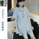 半袖 Tシャツ ショートパンツ 上下セット 2点セット レディース セットアップ 夏 短パン フード付きtシャツ ルームウェア 可愛い ゆったり 体型カバー