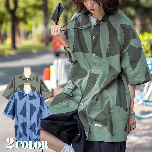 柄シャツ トライアングル柄 半袖シャツ オーバーサイズ 幾何柄 ジオメトリック ダンス 衣装 ヒップホップ 韓国ファッション 大きいサイズ 個性的 夏 春服 秋服 シャツ