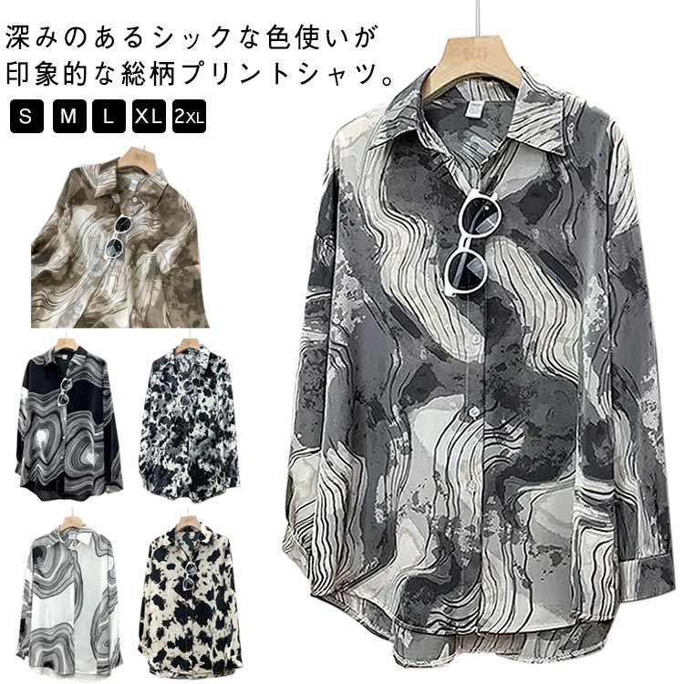ブラウス トップス シャツ 長袖シャツ 柄シャツ 長袖 無地 半袖 アロハシャツ モード レトロ 花柄 幾何柄 韓国 総柄 ゆったり オーバーサイズ お洒落 ダンス衣装 原宿系 プリント 春夏秋冬 個性的 可愛い 流行 トレンド 大きいサイズ カジュアル