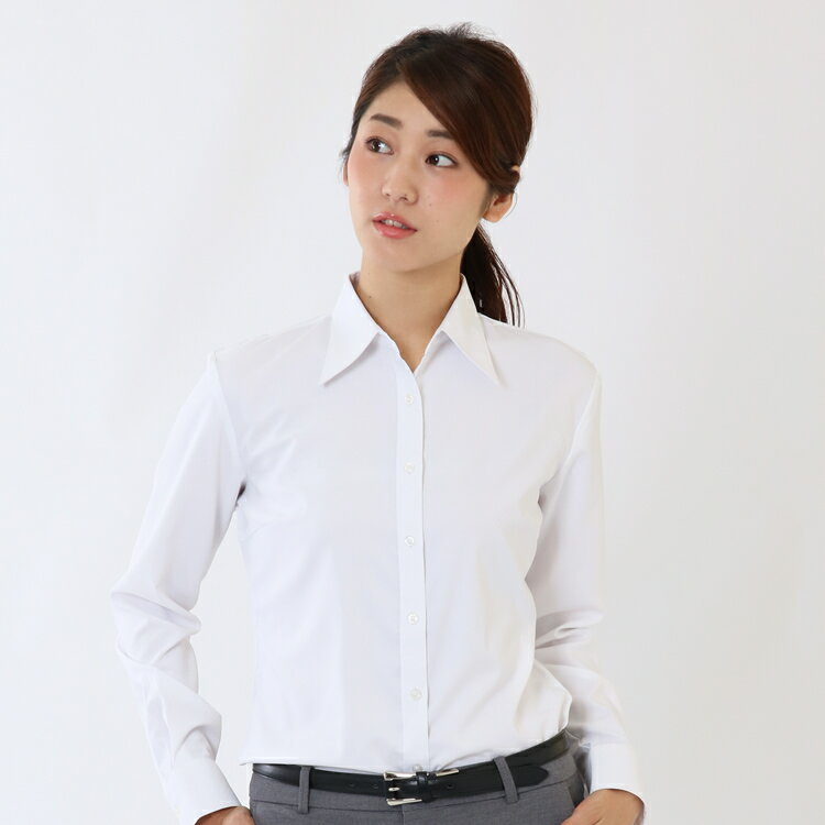 レギュラーカラー ブラウス ストレッチ ワイシャツ レディース オフィス 長袖 Yシャツ ビジネス 作業着 制服 スリム 伸びる 事務服 ホワイト lr2013
