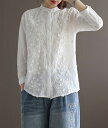 「mori Lady」小花の立体刺繍が散りばめられたバンドカラーブラウス【ホワイト】