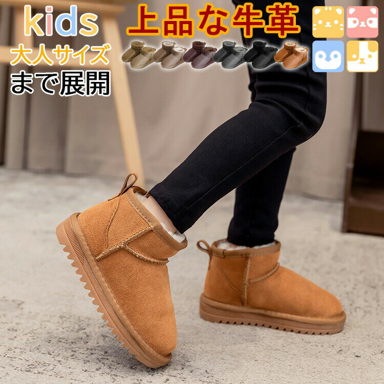 16.5cm-24.8cm キッズ ムートンブーツ 子供靴 ショートブーツ 本革 くつ ジュース 女の子 男の子 レディース 厚底 防寒 暖かい 小学生 幼稚園 保育園 もこもこ お 裏ファー 裏ボア