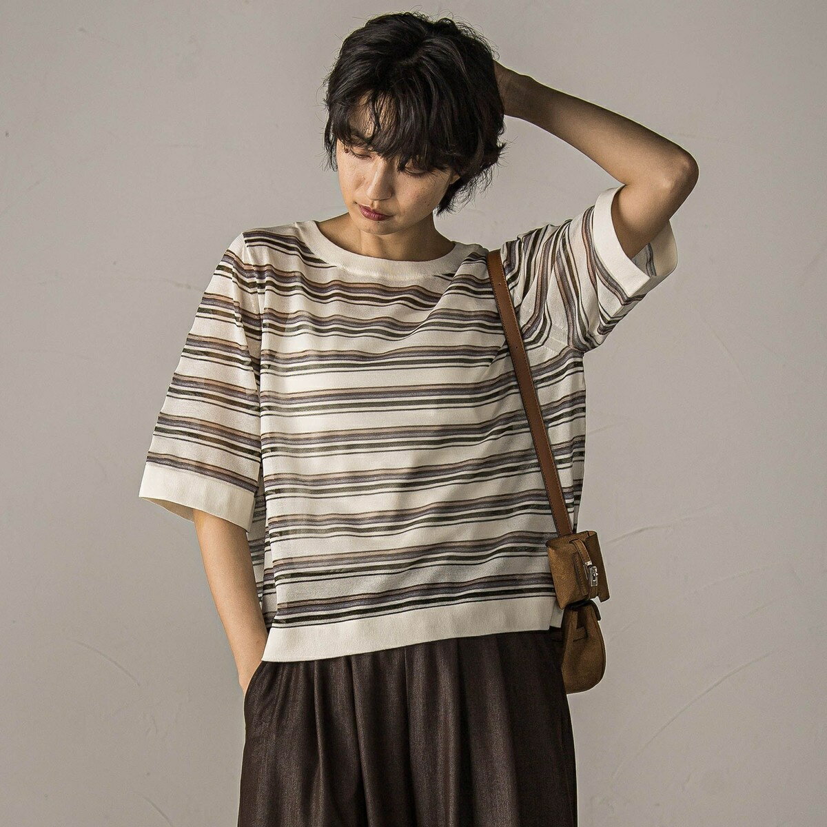 MAYSON GREY(メイソングレイ)シアーマルチボーダーワイドニットプルオーバー≪手洗い可能≫【デザインPOINT】「秋を彩る、レトロなパターン」ほどよくルーズなシルエットに、マルチボーダー柄が映える主役級トップス。配色の絶妙なバランスが、どこか懐かしくて新しい、レトロなムードを演出。身体が泳ぐゆとりを持たせた、リラックスシルエット。コンパクトな丈感、肩を華奢に見せるセットイン、つまりすぎないネックラインが、女性らしさを感じさせるパターン。【スタイリング】ブラウンのボトムと合わせれば、グッと今年らしいスタイリングに。一枚着からインナー使いにも活躍します。【素材の特徴】【16GNEWYARN×ORGANZA天竺】繊維でドライタッチの綿/ナイロン糸をベースに、超細番手のポリエステルラメ糸を取り入れ、多色なボーダーに編み立てました。----------------------------------------------------------------洗濯方法家庭洗濯:液温は40℃を限度とし、手洗いができる。自然乾燥:日陰の平干しがよい。アイロン:底面温度120℃を限度としてアイロン仕上げができる。ドライクリーニング:石油系溶剤による弱いドライクリーニングができる。----------------------------------------------------------------■モデル身長166cm170cm/着用サイズM※画像の商品はサンプルとなりますので実際の商品と仕様、加工、サイズが若干異なる場合がございます。※お客様のモニター環境により実際のお色と多少異なる場合がございます。※撮影状況や光の当たり具合により、色合いが異なって見える場合がございます。関連ワード:MAYSONGREYメイソングレイレディース新作大人コーデ大人カジュアル2025秋冬2025AW秋冬秋物秋服ニットクルーネックボーダー型番:2112-55017-22-2 PZ5256【採寸】M:着丈55cm バスト114cm 肩幅35cm 袖丈33cm 袖幅19cm 袖口幅17cm 裾幅57cm商品のサイズについて【商品詳細】中国素材:綿56% ポリエステル26% ナイロン18%サイズ:M手洗い、漂白不可、タンブル乾燥不可、自然乾燥、アイロン仕上げ可、ドライ可、ウエットクリーニング可※画面上と実物では多少色具合が異なって見える場合もございます。ご了承ください。商品のカラーについてMAYSON GREY(メイソングレイ)シアーマルチボーダーワイドニットプルオーバー≪手洗い可能≫【デザインPOINT】「秋を彩る、レトロなパターン」ほどよくルーズなシルエットに、マルチボーダー柄が映える主役級トップス。配色の絶妙なバランスが、どこか懐かしくて新しい、レトロなムードを演出。身体が泳ぐゆとりを持たせた、リラックスシルエット。コンパクトな丈感、肩を華奢に見せるセットイン、つまりすぎないネックラインが、女性らしさを感じさせるパターン。【スタイリング】ブラウンのボトムと合わせれば、グッと今年らしいスタイリングに。一枚着からインナー使いにも活躍します。【素材の特徴】【16GNEWYARN×ORGANZA天竺】繊維でドライタッチの綿/ナイロン糸をベースに、超細番手のポリエステルラメ糸を取り入れ、多色なボーダーに編み立てました。----------------------------------------------------------------洗濯方法家庭洗濯:液温は40℃を限度とし、手洗いができる。自然乾燥:日陰の平干しがよい。アイロン:底面温度120℃を限度としてアイロン仕上げができる。ドライクリーニング:石油系溶剤による弱いドライクリーニングができる。----------------------------------------------------------------■モデル身長166cm170cm/着用サイズM※画像の商品はサンプルとなりますので実際の商品と仕様、加工、サイズが若干異なる場合がございます。※お客様のモニター環境により実際のお色と多少異なる場合がございます。※撮影状況や光の当たり具合により、色合いが異なって見える場合がございます。関連ワード:MAYSONGREYメイソングレイレディース新作大人コーデ大人カジュアル2025秋冬2025AW秋冬秋物秋服ニットクルーネックボーダー型番:2112-55017-22-2 PZ5256【採寸】M:着丈55cm バスト114cm 肩幅35cm 袖丈33cm 袖幅19cm 袖口幅17cm 裾幅57cm商品のサイズについて【商品詳細】中国素材:綿56% ポリエステル26% ナイロン18%サイズ:M手洗い、漂白不可、タンブル乾燥不可、自然乾燥、アイロン仕上げ可、ドライ可、ウエットクリーニング可※画面上と実物では多少色具合が異なって見える場合もございます。ご了承ください。商品のカラーについて