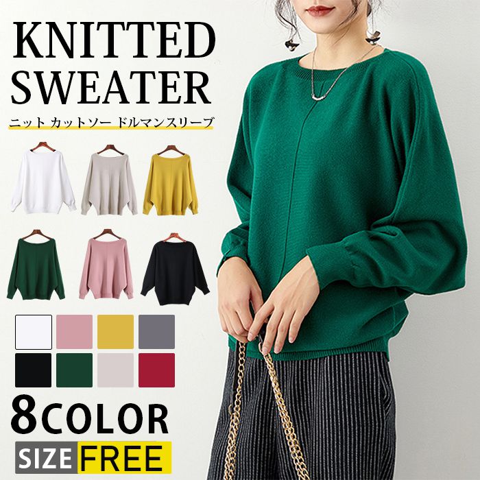 ニット カットソー レディース ドルマン セーター ドルマンスリーブ 長袖 春 秋 プルオーバー ボートネック インナー 秋 冬 トップス プルオーバー ニットセーター アウター ドルマンニット 無地 きれいめ お洒落 ゆったり 体型カバー 黒