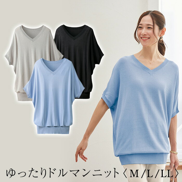 【1月24日-29日限定★ポイント5倍】 ゆったりドルマンニット レディース トップス ニット M L LL 春 夏 秋 カジュアル 大人かわいい おしゃれ オフィスカジュアル 仕事着 ゆったり 体型カバー Vネックニット ドルマンニット
