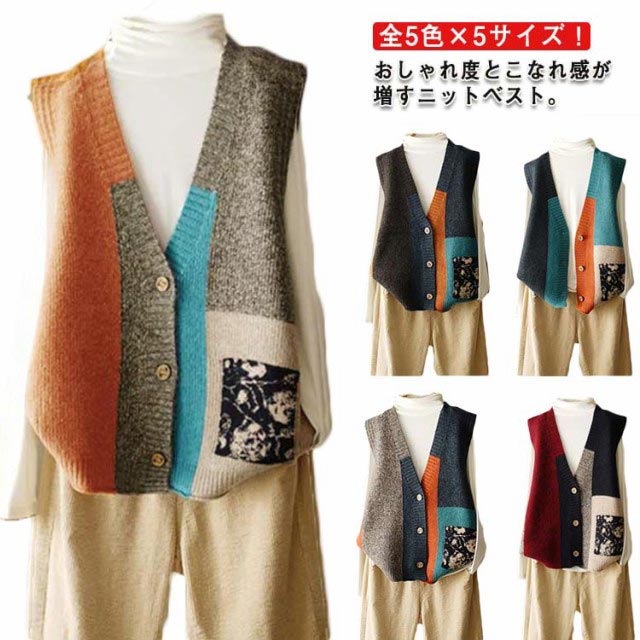 レイヤード ニットベスト ベスト おしゃれ ノースリーブ 柄 前開き 冬 ニット トップス ベスト 春 ジレ 秋 配色 vネック ジレベスト 大きいサイズ カジュアル ナチュラル 着回し 体型カバー 配色 通勤 オフィス シンプル 重ね着 30代 40代