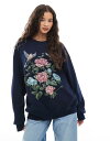 【送料無料】 ミスセルフフリッジ レディース ニット・セーター アウター Miss Selfridge floral tapestry oversized sweatshirt in navy NAVY