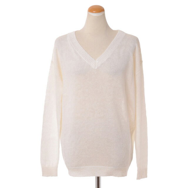 ブルネロクチネリ (Brunello Cucinelli) Vネックセーター リネンシルク ホワイトm10550222cj159 2024SS レディース春夏新作 送料無料 正規取扱