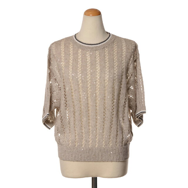 ブルネロクチネリ (Brunello Cucinelli) 半袖丸襟セーター 麻混合 ベージュmc0559400cjk08 2025SS レディース春夏新作 送料無料 正規取扱