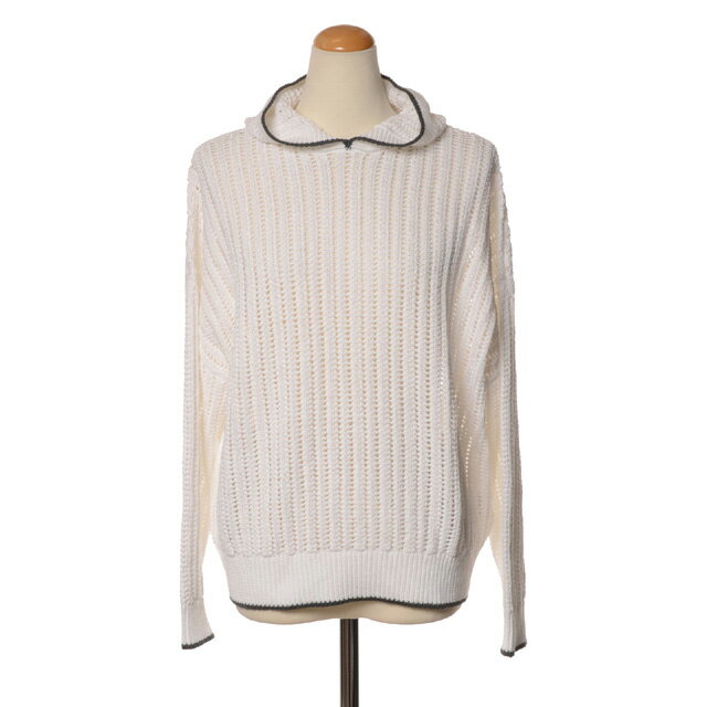 【中古】ブルネロクチネリ BRUNELLO CUCINELLI DB53375 長袖 ニット セーター パーカー ミディアム丈 カシミヤ フォックスファー 毛皮 S 白系 オフホワイト アイボリー 無地 レディース 【ベクトル 古着】 250905