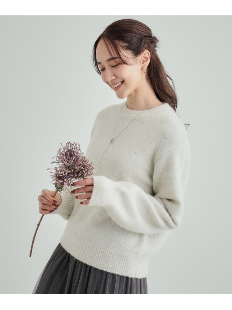 【予約商品について】 ※「先行予約販売中」「予約販売中」をご注文の際は予約商品についてをご確認ください。■重要なお知らせ※ 当店では、ギフト配送サービス及びラッピングサービスを行っておりません。ラッピング・ギフト配送について同時に複数の商品を注文された場合メーカー希望小売価格について置き配についてご利用ガイドSHOO・LA・RUE(シューラルー)【高レビュー/S-LL】上品にキラリと華やぐ スパンコール フェザーニットスパンコールが印象的な華やぎニット【デザイン】さりげないきらきら感で大人可愛く決まる、気分高まる一枚。程よく散りばめられたスパンコールが華やかな印象にしてくれます。カラーによってスパンコールの色が違うのもポイント。毛足の長いフェザーながら、落ち感があるので着膨れしにくくすっきりシルエットに。【スタイリング】チュールのスカートやナロースカートを合わせていただくと、大人フェミニンな雰囲気で着ていただけます。アイボリー(004カラー)やサックスブルー(090カラー)はホリデーシーズンのお出かけにおすすめです。グレー(012カラー)はきれいめにもカジュアルにもマッチ。イエロー(032カラー)は暗くなりがちな冬のコーデも華やかにしてくれます。丈感やクルーネックがスッキリとした印象を与えてくれるので、デニムやワイドパンツ、スカートなど幅広いアイテムとマッチします。【お客様からいただいたコメント】・キラキラのラメ糸と小さなスパンコールがキラっと光り上品で可愛いです。 フワフワで肌触りも良く色違いが欲しくなりました。 (身長:170cm 体型:普通 グレーのLLサイズ購入)・スパンコールがキラキラしていて可愛く着丈もちょうど良かったです。 ふわっとしてて着心地もよく肌触りも気持ちいいです。 (身長:150cm 体型:普通 サックスブルーのMサイズ購入) とのお声を頂戴しております。【素材】ふわふわとしたフェザーヤーン素材にスパンコールを散りばめたニット素材。※照明の関係により、実際よりも色味が違って見える場合があります。また、パソコン・スマートフォンなどの環境により、若干製品と画像のカラーが異なる場合もございます。型番:20240274119021-004-01 NB2647【採寸】●製品寸法:01(S):着丈55cm B95cm 袖丈56cm 肩幅40cm02(M):着丈57cm B98cm 袖丈57cm 肩幅41cm03(L):着丈59cm B101cm 袖丈58cm 肩幅42cm04(LL):着丈61cm B104cm 袖丈59cm 肩幅43cm備考:商品のサイズについて【商品詳細】バングラデシュ製素材:ポリエステル60% ナイロン39% ポリウレタン1%サイズ:01(S)、02(M)、03(L)、04(LL)手洗い可※画面上と実物では多少色具合が異なって見える場合もございます。ご了承ください。商品のカラーについて
