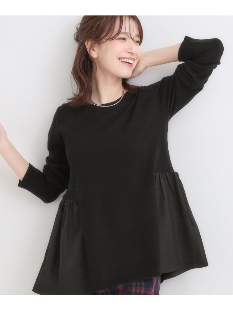 【SALE/10%OFF】【洗濯機可/S-LL/体型カバー】異素材きりかえ Aラインニット SHOO・LA・RUE シューラルー トップス ニット ブルー ブラック【RBA_E】[Rakuten Fashion]