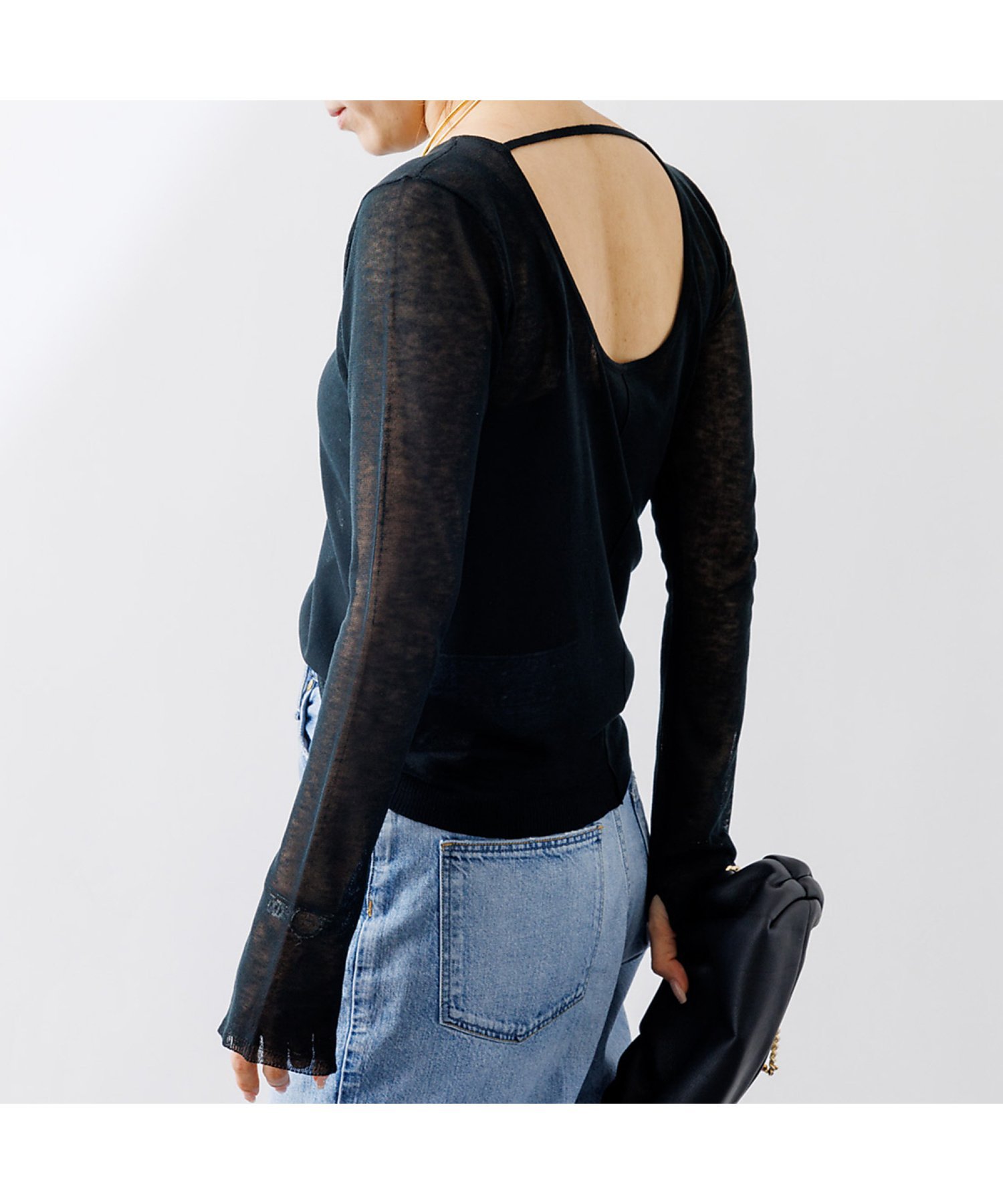 【SALE/50%OFF】Rouge vif la cle バックデザインハイゲージシアーニットプルオーバー ルージュ・ヴィフ ラクレ トップス ニット ブラック ブルー【送料無料】