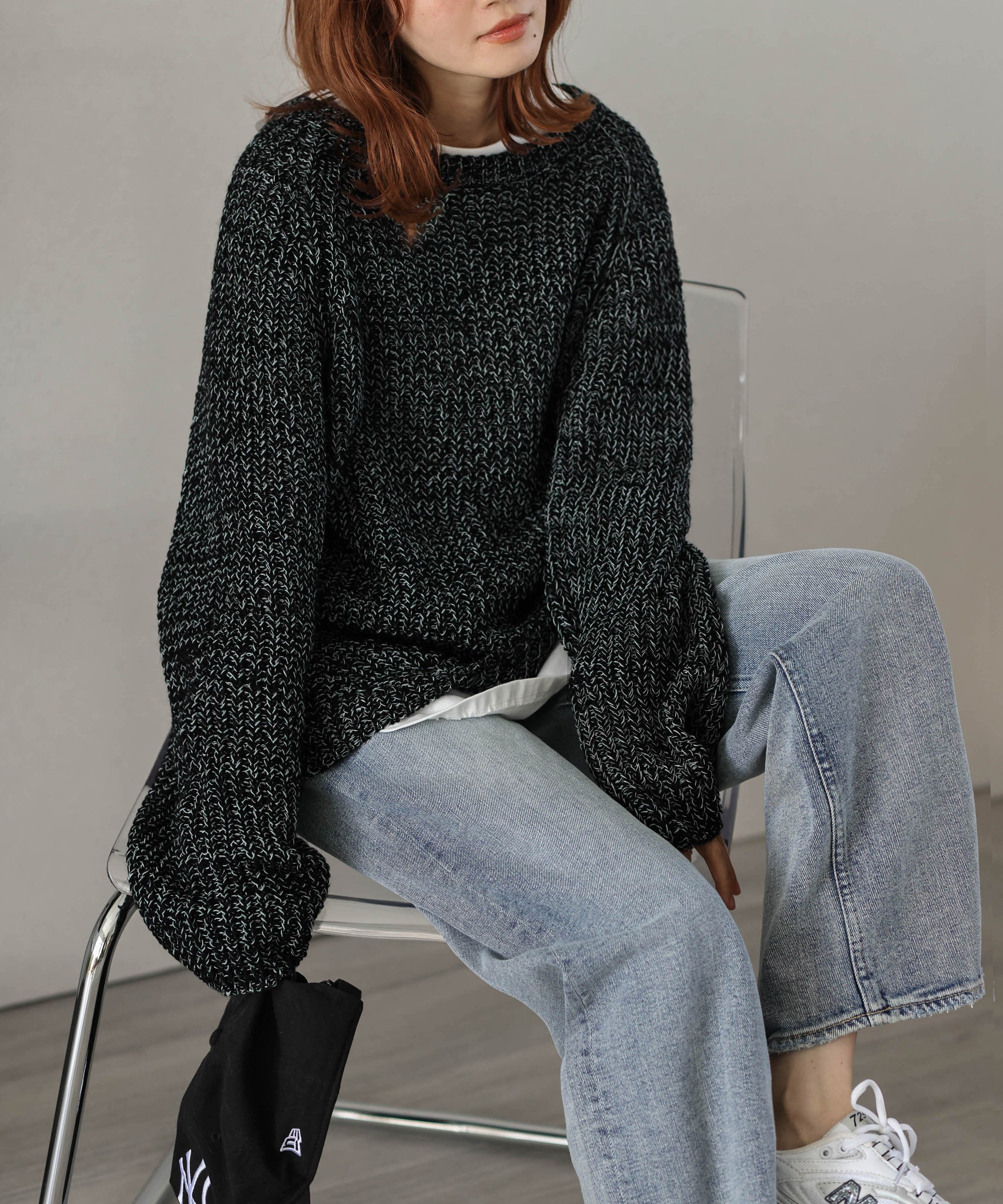 La-gemme ローゲージメランジニット ラジュール トップス ニット ブルー ブラック グレー【送料無料】
