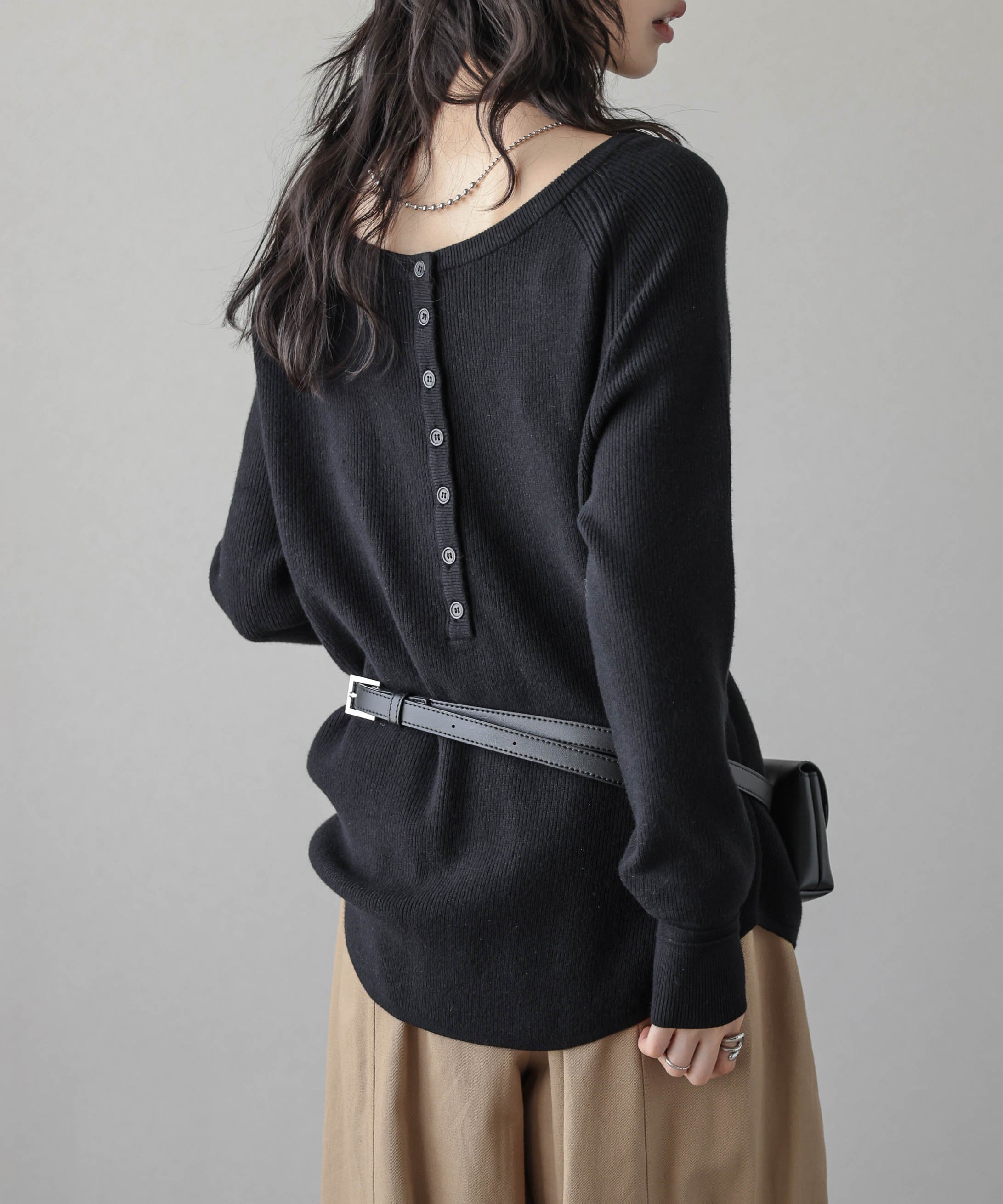 【SALE/50%OFF】La-gemme 前後2way ヘンリーネック リブニットトップス ラジュール トップス ニット ホワイト ブラック グレー