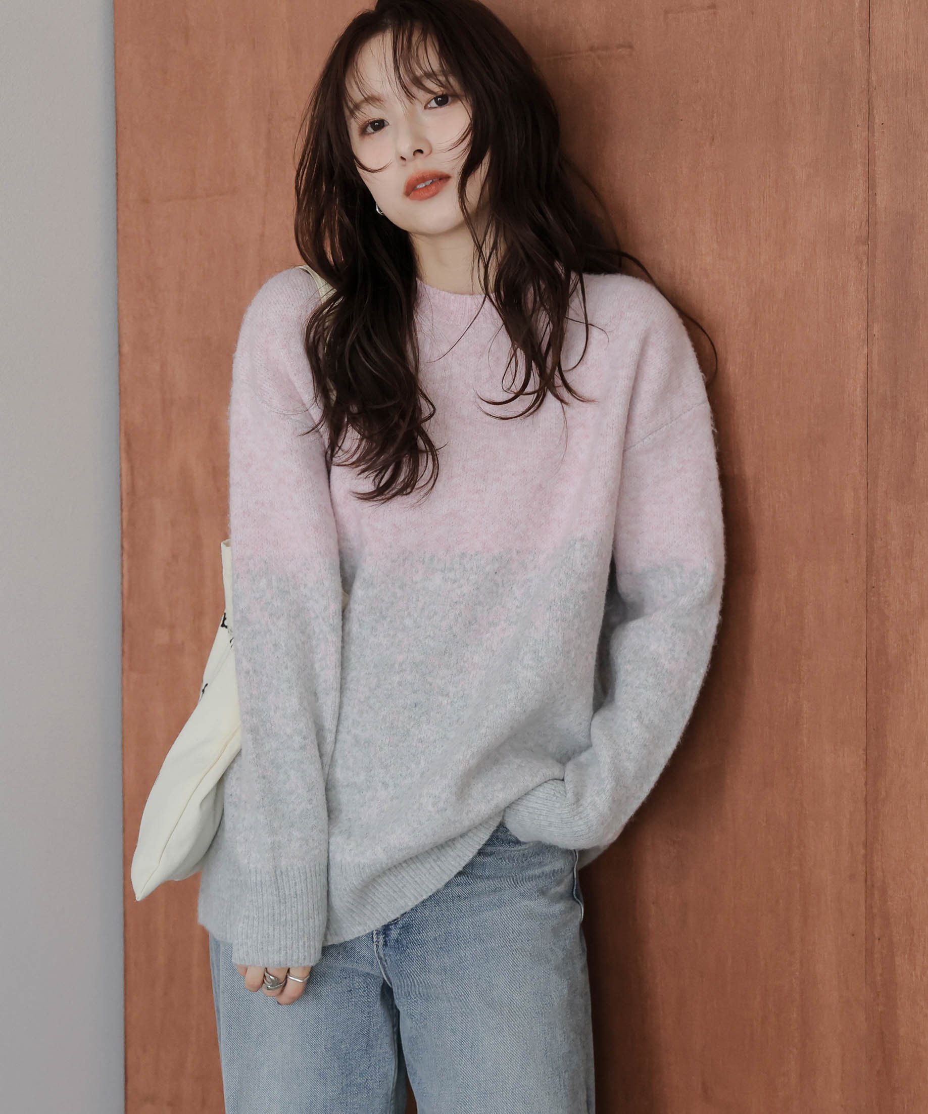 La-gemme グラデーションニットプルオーバー ラジュール トップス ニット グレー ピンク ブラウン【送料無料】