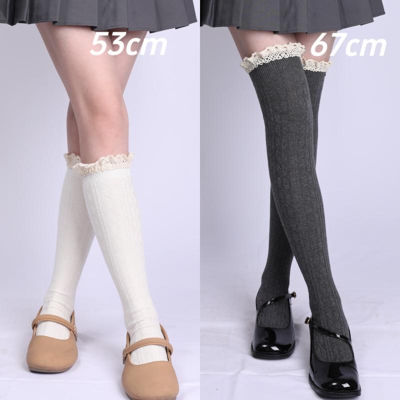 サイハイソックス レディース 綿 コットン 厚手 レース フリル 白 オーバーニー あたたかい 秋冬 純欲系 フェミニン 日系 ロングブーツコーデ 大腿丈ソックス 女性用 普段使い