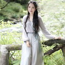 漢服 レディース 夏秋 若者向け 綿 ポリエステル混 レトロ 小花柄 清涼感 オリジナルデザイン ロング丈 刺繍 グレー 軽量 薄手 普段使い カジュアル