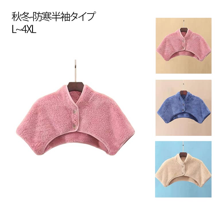 肌寒い日のデスクワークやエアコンで社内が寒い日、お出かけ、肩コリが辛い時に、使える温活アイテム。肩を温めることで、寒気が和らぎ、睡眠の質を上げる効果があります。全シーズン使える春秋用ともこもこボア付き冬用2タイプご用意しております。脱げないようフロントにボタンが付いているので寝返りが多い、就寝中などの寝冷えを対策します。薄手で軽量のため違和感なく装着していただけます。ごわつかないためお洋服のシルエットを崩すこともありません。肌着の上から着て頂いて、その上からトップスやニットを着てもOK!洗濯などお手入れもしやすく、長くご愛用いただけます。 サイズ M(薄手) L(薄手) XL(薄手) 2XL(薄手) M(厚手) L(厚手) XL(厚手) 2XL(厚手) サイズについての説明 M 着丈28 バスト75−95 肩幅35−45L 着丈29 バスト95−105 肩幅45−50XL 着丈30 バスト105−115 肩幅50−552XL 着丈31 バスト115−124 肩幅55−60 素材 ポリエステル 色 杏色 グレー ブラック 備考 ●サイズ詳細等の測り方はスタッフ間で統一、徹底はしておりますが、実寸は商品によって若干の誤差(1cm〜3cm )がある場合がございますので、予めご了承ください。 ●商品の色は、撮影時の光や、お客様のモニターの色具合などにより、実際の商品と異なる場合がございます。あらかじめ、ご了承ください。 ●製品によっては、生地の特性上、洗濯時に縮む場合がございますので洗濯時はご注意下さいませ。 ▼色味の強い製品によっては他の衣類などに色移りする場合もございますので、速やかに(脱水、乾燥等)するようにお願いいたします。 ▼生地によっては摩擦や汗、雨などで濡れた時は、他の製品に移染する恐れがございますので、着用の際はご注意下さい。 ▼生地の特性上、やや匂いが強く感じられるものもございます。数日のご使用や陰干しなどで気になる匂いはほとんど感じられなくなります。