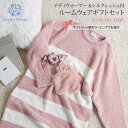 部屋着 ふわふわパジャマ 上下セット ルームウエア セットアップ ナイトウェア 長袖 厚手 クルーネック 秋 暖かい 大人 可愛い おしゃれ リボンモチーフ