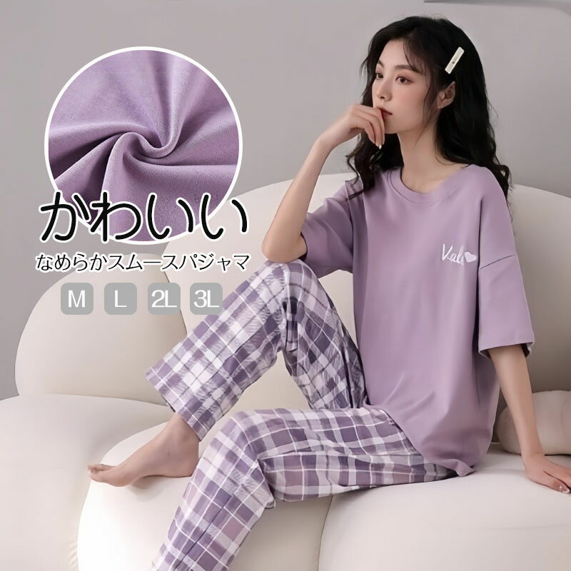 「スーパーSALE半額」ルームウェア レディース 夏 パジャマ 可愛い ばくね 夏用パジャマ レディース かわいい M L XL 2XL ルームウェア 半袖 疲れが取れる パジャマ 襟なし 夏 部屋着 綿 可愛いパジャマ 上下セット 大人用 パジャマ レディース 産後 母の日