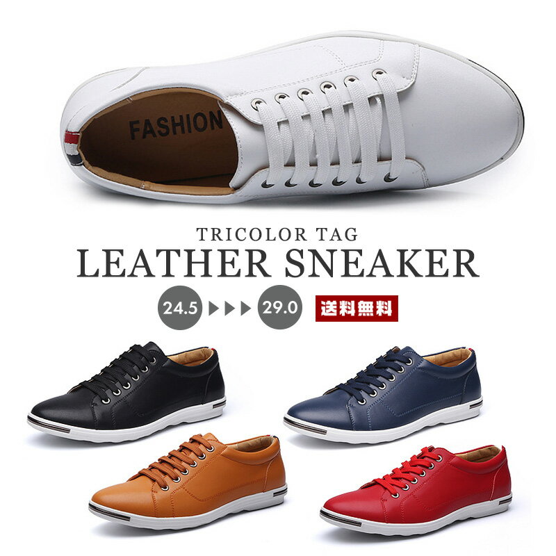 【送料無料】メンズ レザースニーカー【靴 シューズ 革靴 紐靴 レースアップ ファッション PUレザー 革 皮 合成皮革 合皮 ソフトレザー トリコロール 男性 紳士 シンプル カジュアル 上品 柔軟 軽量 ゴム底 サイズ豊富 小さい 大きい ビッグサイズ 春夏 秋冬】
