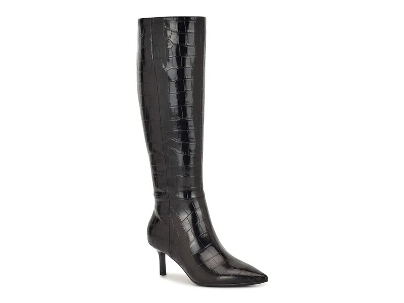 ナインウェスト レディース シューズ ブーツ・レインブーツ Black Croc Print Nine West Kimdee 9x9 Wide Calf Boot