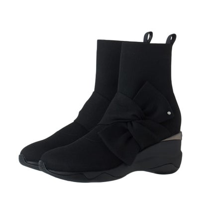プラスダイアナ +diana 【撥水加工】ニットショートブーツ (黒生地)