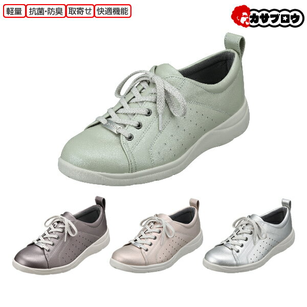 【サイズ】22.0cm22.5cm23.0cm23.5cm24.0cm24.5cm 【カラー】シルバーピンクグリーンパープル 【商品詳細】※詳細サイズ※ 23.0cm:片足重量約170g ヒール高さ約30mm はだしサイズがおすすめ 甲高・幅広の方はワンサイズ上がおすすめです。 【コメント】軽くて歩きやすいスポーティなパンジースニーカーから足もとがパッと明るくなるカラーが登場!クッション性の良い中敷で快適。●履き口にゴム素材の紐通し付き●踵を包み込むようにフィットするU字型アーチサポート●安全で長期間効果が持続する抗菌防臭加工を中敷に施しています●軽量で耐摩耗性に優れたEVA+Rソール 「軽量」 「快適機能」「取寄せ」