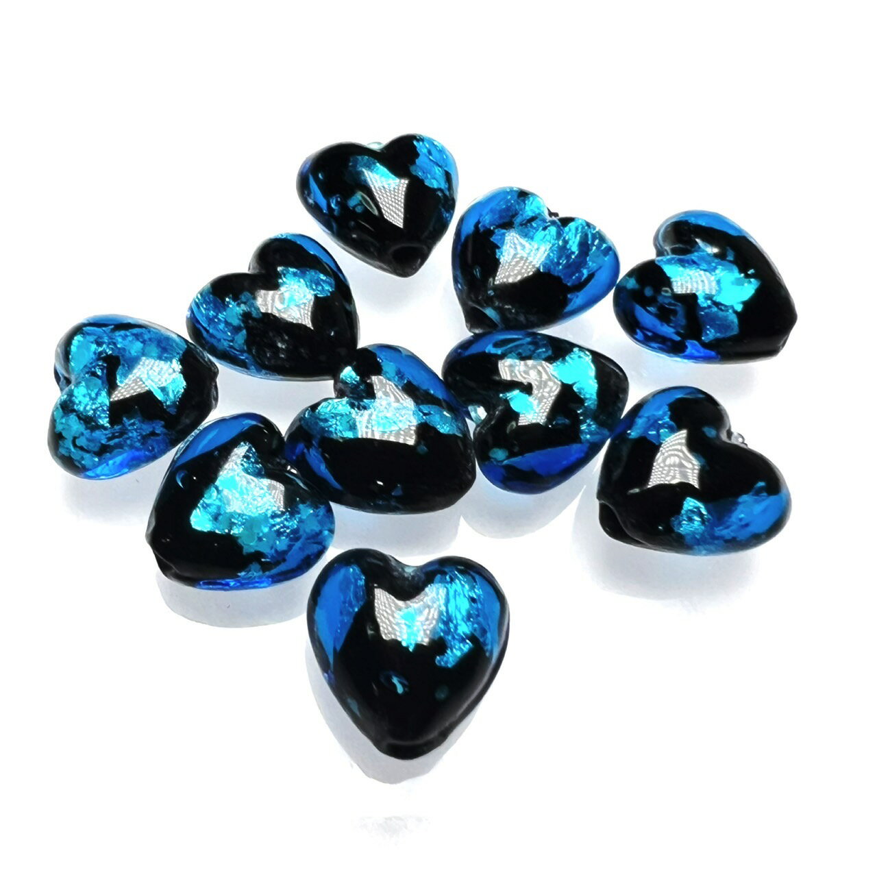 ホタルガラス ブルー ハート 10mm 10粒セット とんぼ玉 蓄光 夜光タイプ 送料無料